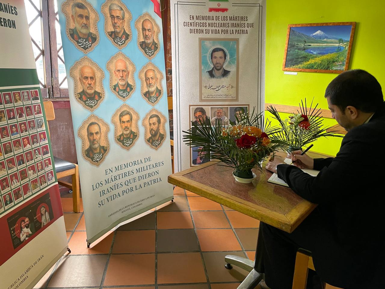 به اطلاع می رساند، با عنایت به پیگیری‌های مستمر بخش فرهنگی این سفارت، سومین روز هفته بزرگ فرهنگی جمهوری اسلامی ایران در کلمبیا در محل بنیاد فرهنگی خانه جایگزین بوگوتا و با تمرکز بر موضوعات صلح و سیاست (مخالفت با جنگ) برگزار گردید و میهمانان جهت آشنایی با فرهنگ، تاریخ و تمدن، آداب و سنن، موسیقی، سینما، هنر، معماری، گردشگری، میهمان نوازی، صنایع دستی، آشپرخانه ایرانی و ...  در این مراسم حضور پیدا کردند.