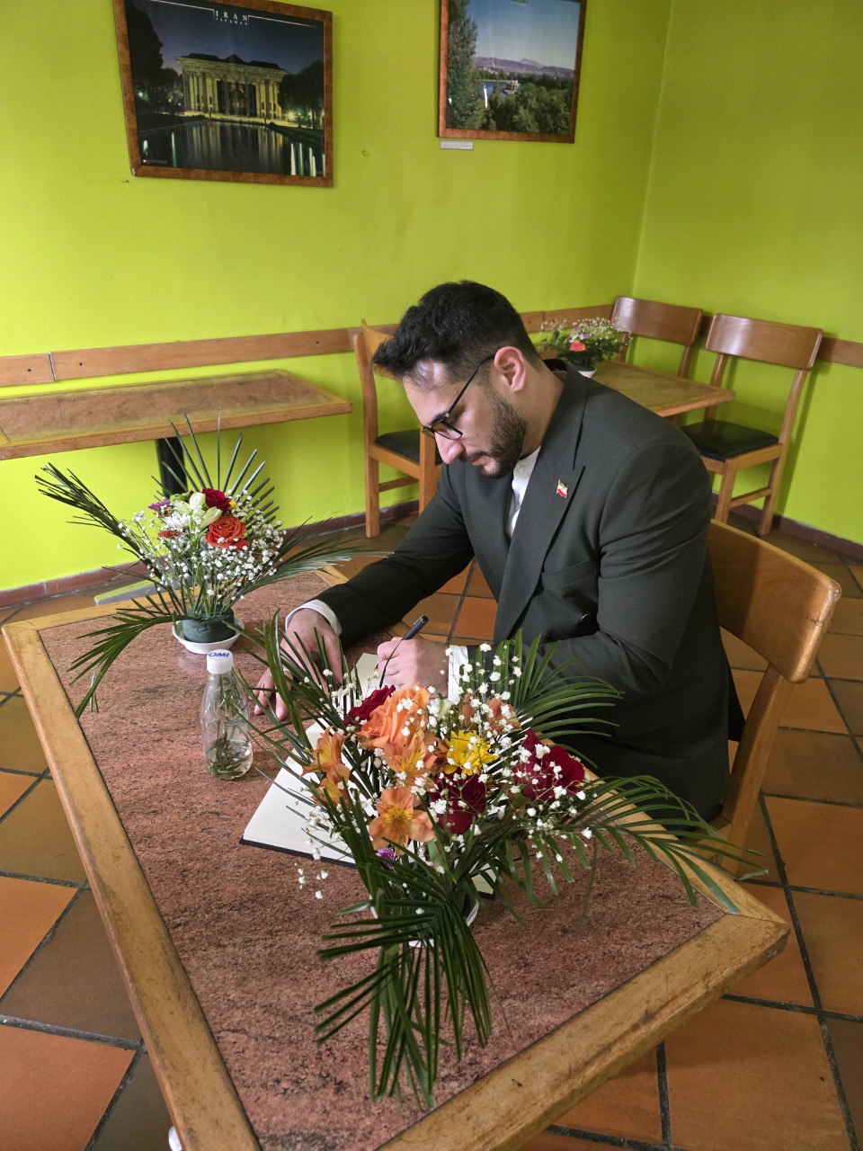 • تقدیر و تشکر از مدیر خانه جایگزین و همکاران ایشان در احرای مطلوب این مراسم با اهدای صنایع دستی ایرانی از سوی سفیر محترم؛